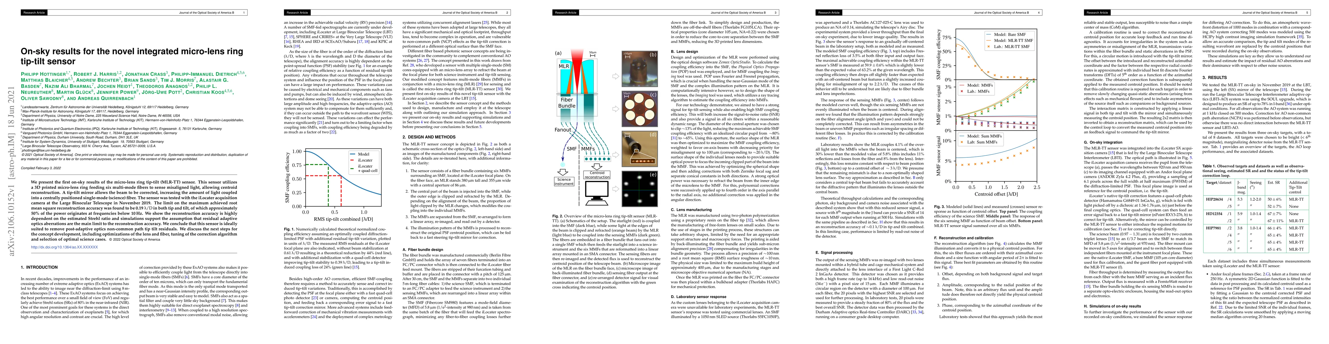 This paper reports the first on-sky results of a novel micro-lens ring tip-tilt sensor, achieving a reconstruction accuracy of 0.19 λ/D, primarily limited by residual adaptive optics aberrations. The sensor is effective for correcting post-adaptive optics tip-tilt residuals.
