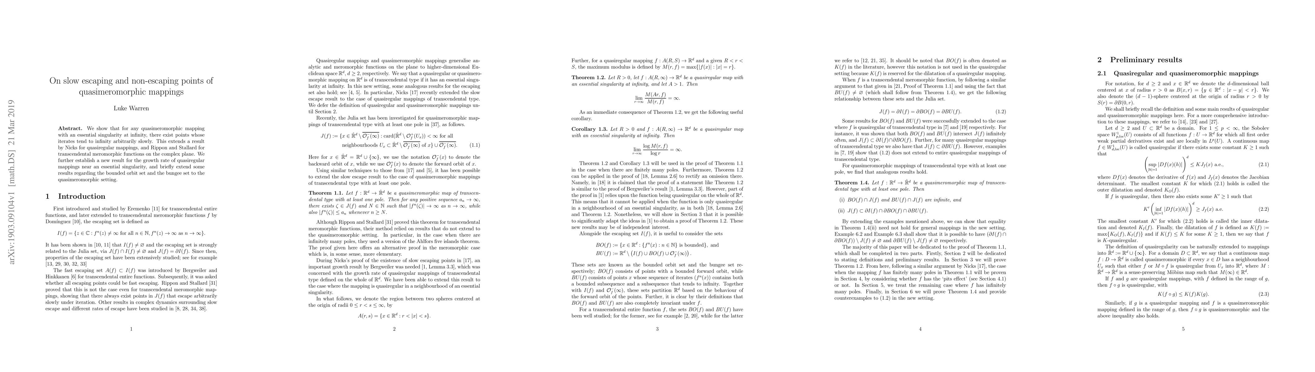 The research provides a new theoretical framework for understanding the behavior of quasiregular mappings, including their escaping sets and dynamical properties.