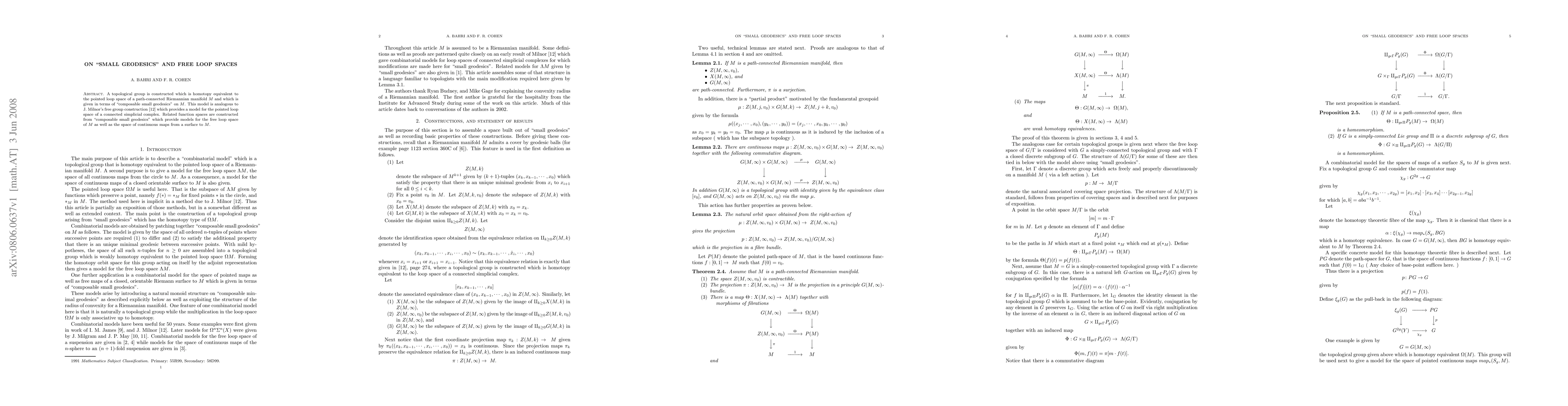 A topological group is constructed which is homotopy equivalent to the pointed loop space of a path-connected Riemannian manifold $M$ and which is given in terms of "composable small geodesics" on $M$. This model is analogous to J. Milnor's free group construction \cite{Milnor} which provides a model for the pointed loop space of a connected simplicial complex. Related function spaces are constructed from "composable small geodesics" which provide models for the free loop space of $M$ as well as the space of continuous maps from a surface to $M$.