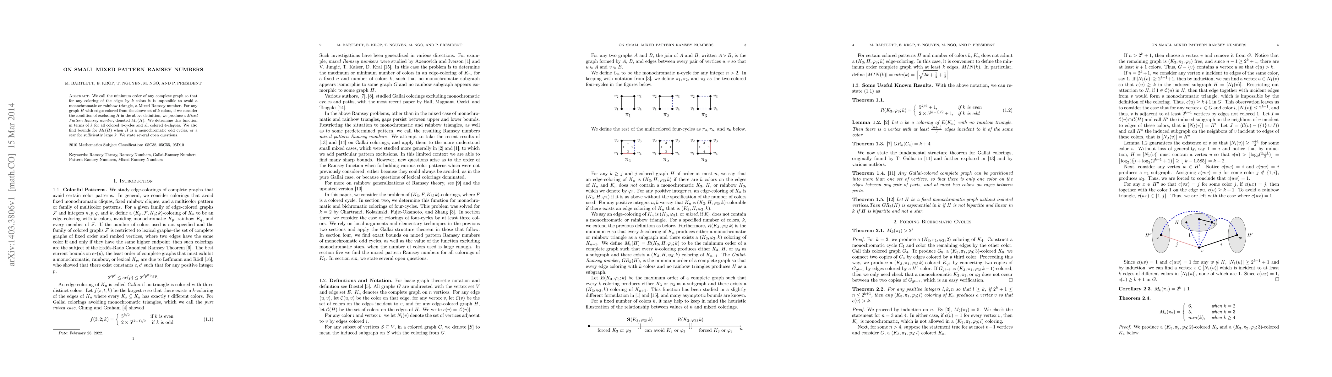 We call the minimum order of any complete graph so that for any coloring of the edges by $k$ colors it is impossible to avoid a monochromatic or rainbow triangle, a Mixed Ramsey number. For any graph $H$ with edges colored from the above set of $k$ colors, if we consider the condition of excluding $H$ in the above definition, we produce a \emph{Mixed Pattern Ramsey number}, denoted $M_k(H)$. We determine this function in terms of $k$ for all colored $4$-cycles and all colored $4$-cliques. We also find bounds for $M_k(H)$ when $H$ is a monochromatic odd cycles, or a star for sufficiently large $k$. We state several open questions.