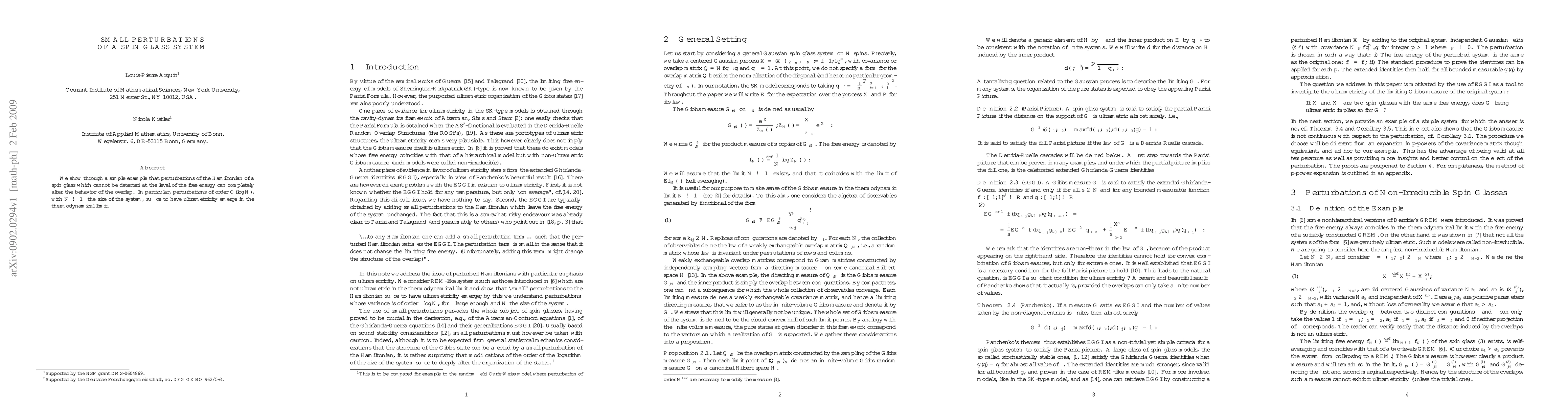 We show through a simple example that perturbations of the Hamiltonian of a spin glass which cannot be detected at the level of the free energy can completely alter the behavior of the overlap. In particular, perturbations of order O(log N), with N the size of the system, suffice to have ultrametricity emerge in the thermodynamical limit.