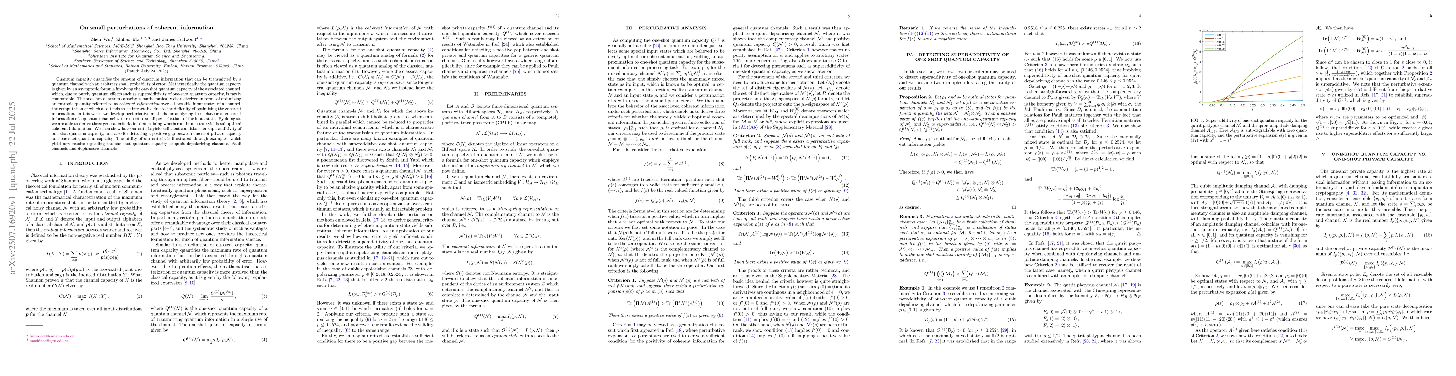 Quantum capacity quantifies the amount of quantum information that can be transmitted by a quantum channel with an arbitrary small probability of error. Mathematically, the quantum capacity is given by an asymptotic formula involving the one-shot quantum capacity of the associated channel, which, due to purely quantum effects such as superadditivity of one-shot quantum capacity, is rarely computable. The one-shot quantum capacity is mathematically characterized in terms of optimizing an entropic quantity referred to as coherent information over all possible input states of a channel, the computation of which also tends to be intractable due to the difficulty of optimizing the coherent information. In this work, we develop perturbative methods for analyzing the behavior of coherent information of a quantum channel with respect to small perturbations of the input state. By doing so, we are able to derive three general criteria for determining whether an input state yields suboptimal coherent information. We then show how our criteria yield sufficient conditions for superadditivity of one-shot quantum capacity, and also for detecting a positive gap between one-shot private capacity and one-shot quantum capacity. The utility of our criteria is illustrated through examples, which yield new results regarding the one-shot quantum capacity of qubit depolarizing channels, Pauli channels and dephrasure channels.