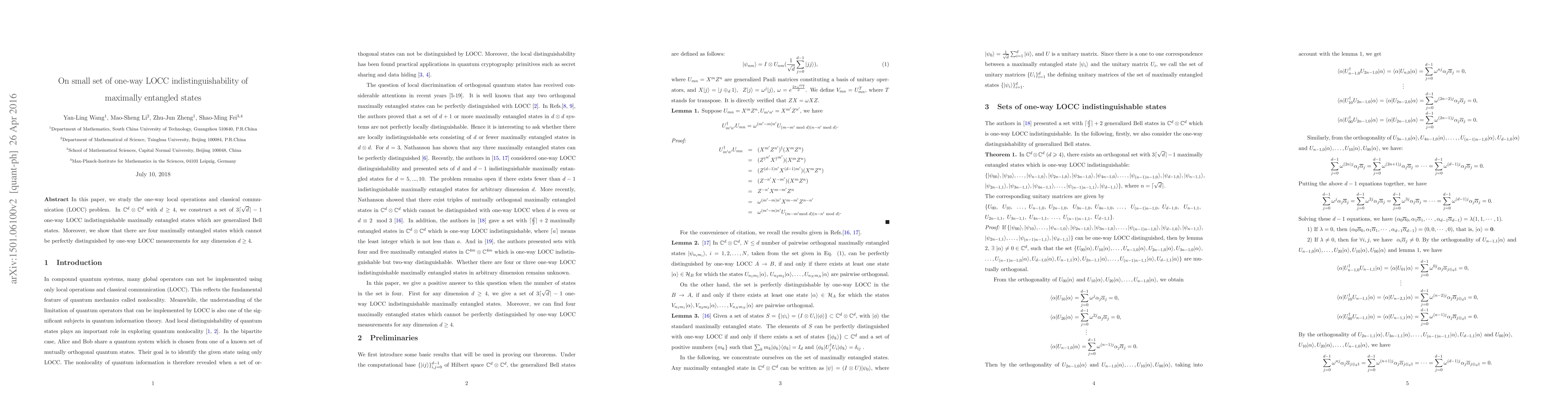 This paper constructs a set of maximally entangled states in $\mathbb{C}^d\otimes\mathbb{C}^d$ ($d\geq4$) that are one-way LOCC indistinguishable, specifically $3\lceil\sqrt{d}\rceil-1$ generalized Bell states. It also proves that four maximally entangled states remain indistinguishable by one-way LOCC for any dimension $d\geq 4$.