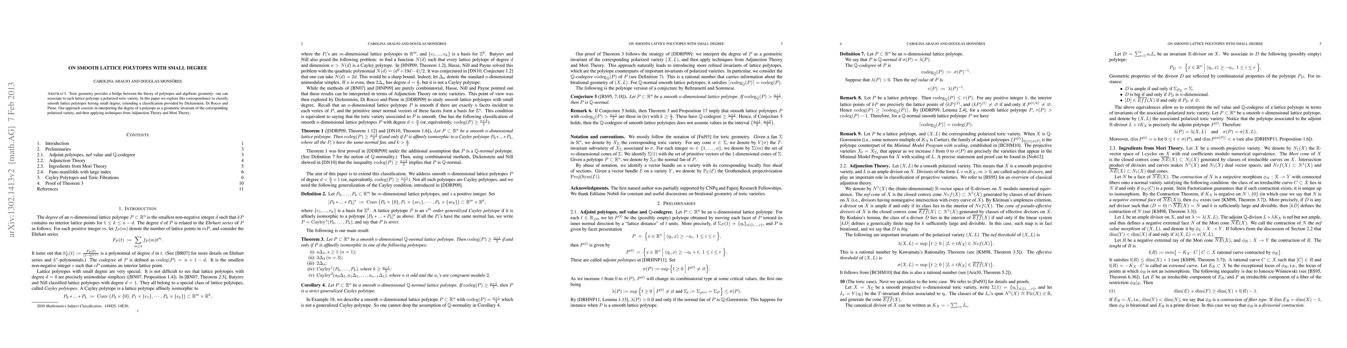 This paper classifies smooth lattice polytopes with small degree by linking them to polarized toric varieties via toric geometry, employing Adjunction Theory and Mori Theory to interpret the geometric invariant of the corresponding varieties.