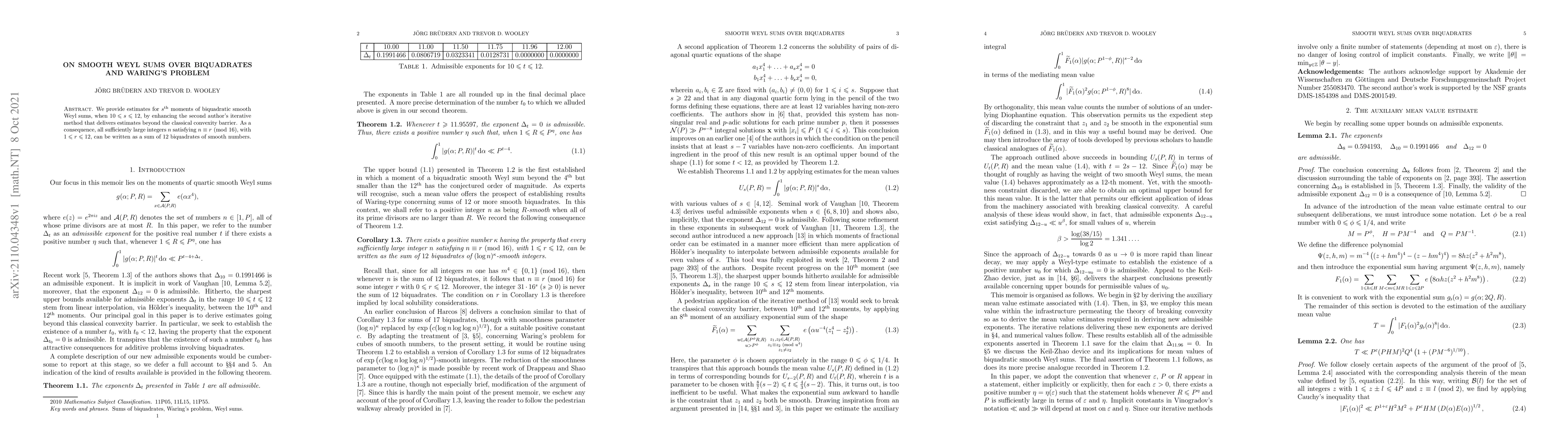 This paper enhances iterative methods to estimate $s^{\rm th}$ moments of biquadratic smooth Weyl sums for $10\le s\le 12$, breaking past classical convexity barriers. Consequently, it proves that large integers congruent to $1$ through $12$ modulo $16$ can be expressed as sums of $12$ biquadrates of smooth numbers.