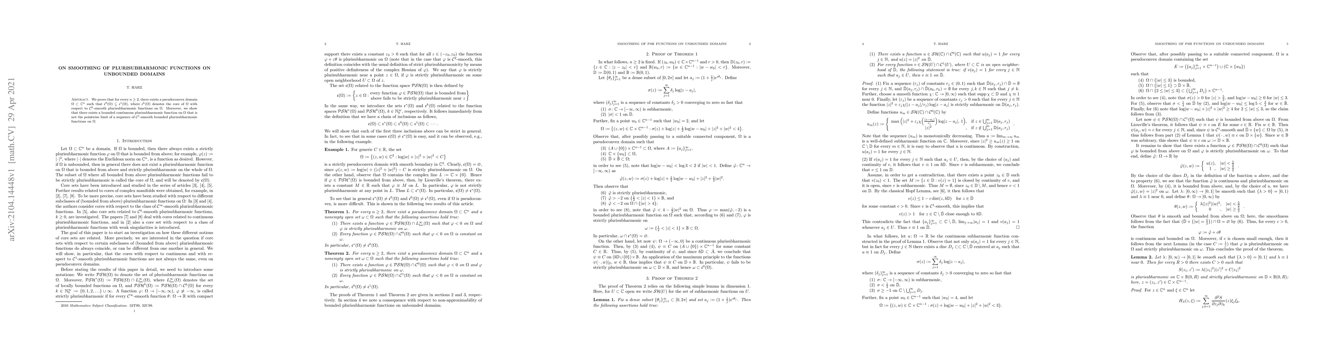 We prove that for every $n \ge 2$, there exists a pseudoconvex domain $\Omega \subset \mathbb{C}^n$ such that $\mathfrak{c}^0(\Omega) \subsetneq \mathfrak{c}^1(\Omega)$, where $\mathfrak{c}^k(\Omega)$ denotes the core of $\Omega$ with respect to $\mathcal{C}^k$-smooth plurisubharmonic functions on $\Omega$. Moreover, we show that there exists a bounded continuous plurisubharmonic function on $\Omega$ that is not the pointwise limit of a sequence of $\mathcal{C}^1$-smooth bounded plurisubharmonic functions on $\Omega$.