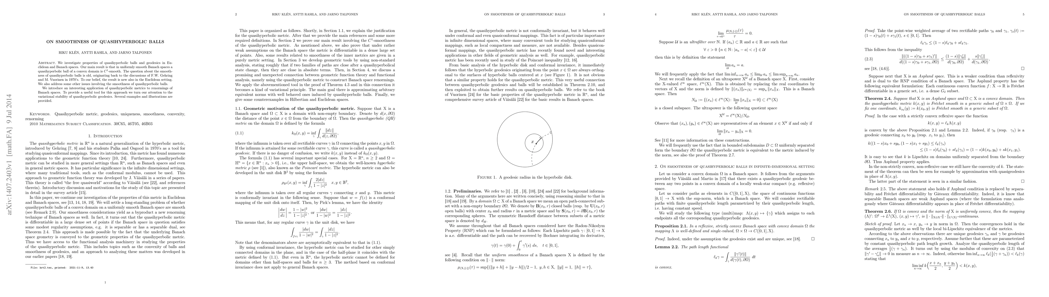 We investigate properties of quasihyperbolic balls and geodesics in Euclidean and Banach spaces. Our main result is that in uniformly smooth Banach spaces a quasihyperbolic ball of a convex domain is $C^1$-smooth. The question about the smoothness of quasihyperbolic balls is old, originating back to the discussions of F.W. Gehring and M. Vuorinen in 1970's. To our belief, the result is new also in the Euclidean setting. We also address some other issues involving the smoothness of quasihyperbolic balls. We introduce an interesting application of quasihyperbolic metrics to renormings of Banach spaces. To provide a useful tool for this approach we turn our attention to the variational stability of quasihyperbolic geodesics. Several examples and illustrations are provided.