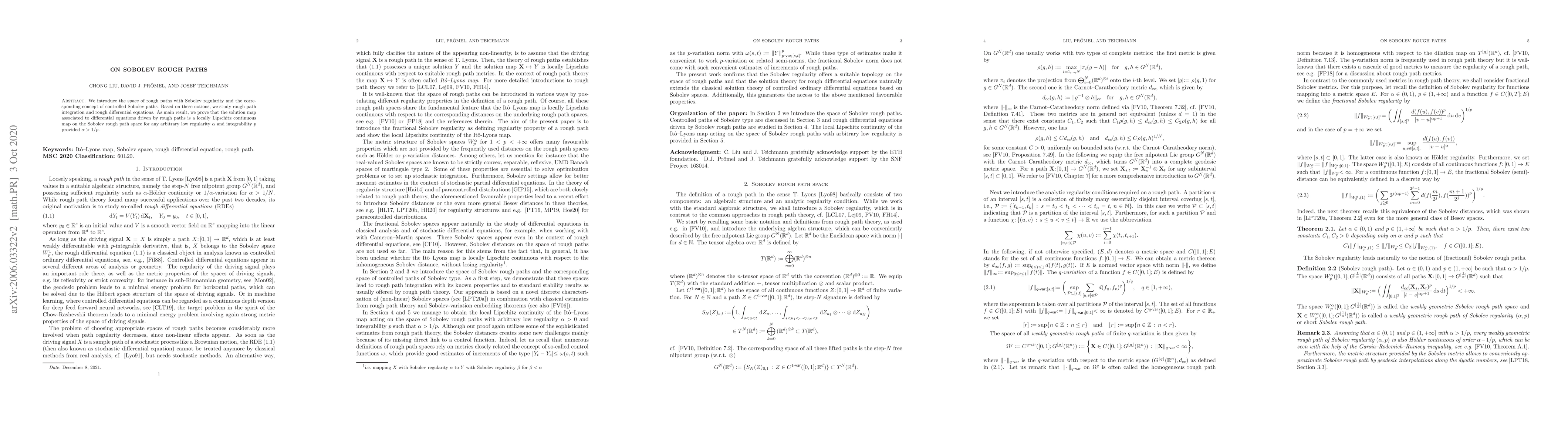 We introduce the space of rough paths with Sobolev regularity and the corresponding concept of controlled Sobolev paths. Based on these notions, we study rough path integration and rough differential equations. As main result, we prove that the solution map associated to differential equations driven by rough paths is a locally Lipschitz continuous map on the Sobolev rough path space for any arbitrary low regularity $\alpha$ and integrability $p$ provided $\alpha >1/p$.