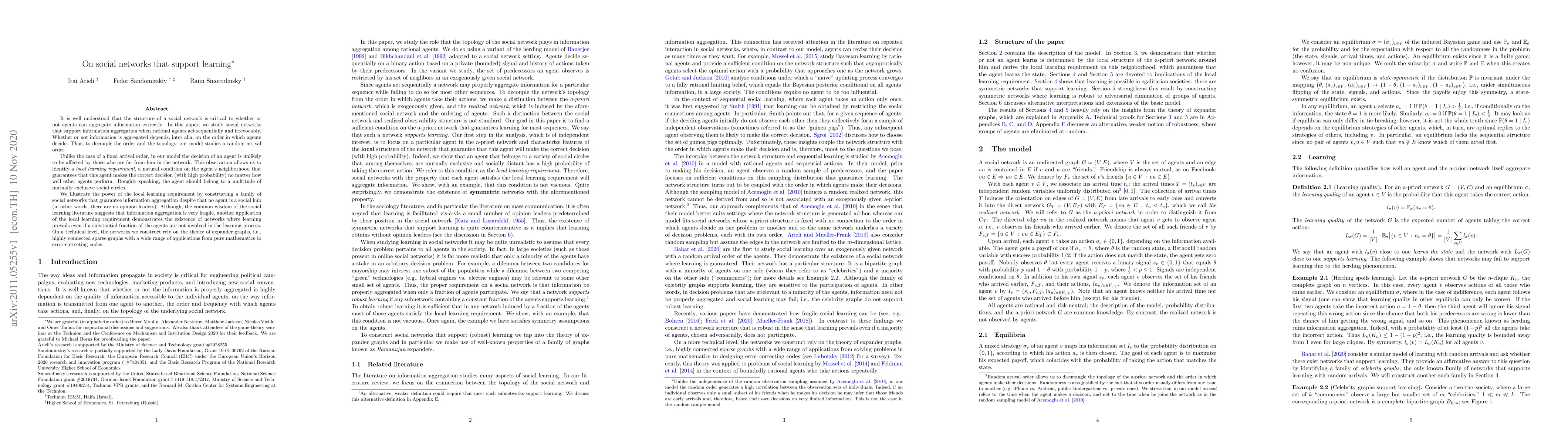 It is well understood that the structure of a social network is critical to whether or not agents can aggregate information correctly. In this paper, we study social networks that support information aggregation when rational agents act sequentially and irrevocably. Whether or not information is aggregated depends, inter alia, on the order in which agents decide. Thus, to decouple the order and the topology, our model studies a random arrival order. Unlike the case of a fixed arrival order, in our model, the decision of an agent is unlikely to be affected by those who are far from him in the network. This observation allows us to identify a local learning requirement, a natural condition on the agent's neighborhood that guarantees that this agent makes the correct decision (with high probability) no matter how well other agents perform. Roughly speaking, the agent should belong to a multitude of mutually exclusive social circles. We illustrate the power of the local learning requirement by constructing a family of social networks that guarantee information aggregation despite that no agent is a social hub (in other words, there are no opinion leaders). Although the common wisdom of the social learning literature suggests that information aggregation is very fragile, another application of the local learning requirement demonstrates the existence of networks where learning prevails even if a substantial fraction of the agents are not involved in the learning process. On a technical level, the networks we construct rely on the theory of expander graphs, i.e., highly connected sparse graphs with a wide range of applications from pure mathematics to error-correcting codes.
