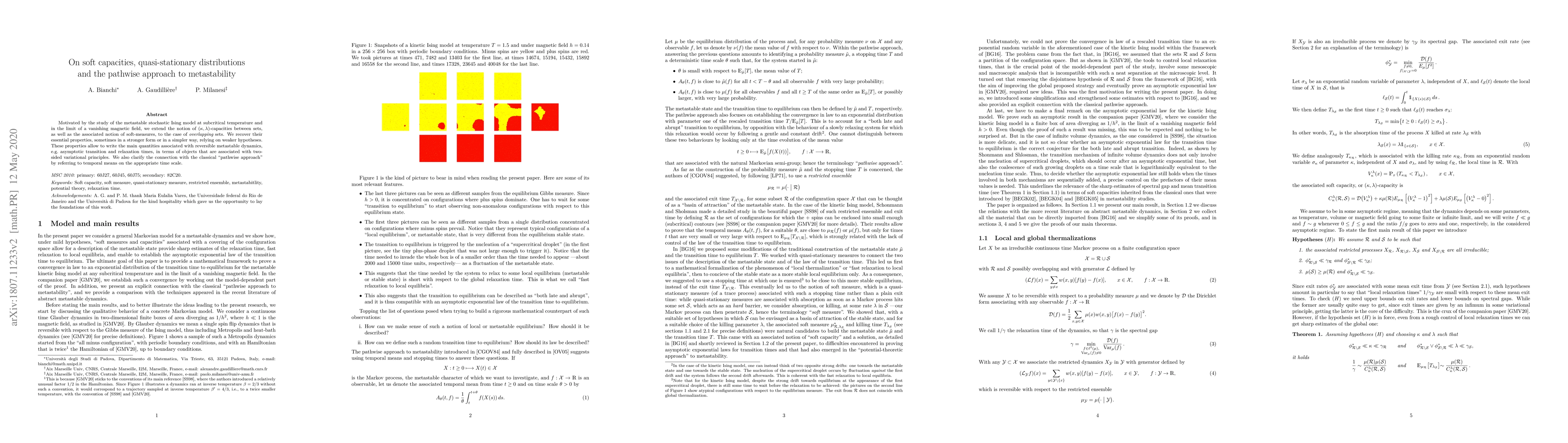 Motivated by the study of the metastable stochastic Ising model at subcritical temperature and in the limit of a vanishing magnetic field, we extend the notion of ($\kappa$, $\lambda$)-capacities between sets, as well as the associated notion of soft-measures, to the case of overlapping sets. We recover their essential properties, sometimes in a stronger form or in a simpler way, relying on weaker hypotheses. These properties allow to write the main quantities associated with reversible metastable dynamics, e.g. asymptotic transition and relaxation times, in terms of objects that are associated with two-sided variational principles. We also clarify the connection with the classical "pathwise approach" by referring to temporal means on the appropriate time scale.