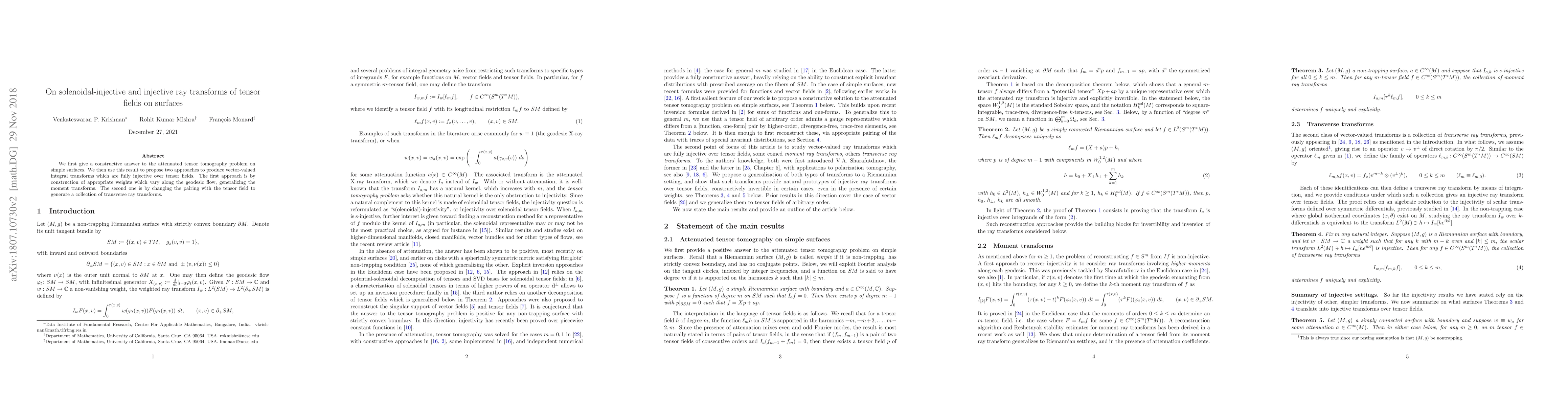 We first give a constructive answer to the attenuated tensor tomography problem on simple surfaces. We then use this result to propose two approaches to produce vector-valued integral transforms which are fully injective over tensor fields. The first approach is by construction of appropriate weights which vary along the geodesic flow, generalizing the moment transforms. The second one is by changing the pairing with the tensor field to generate a collection of transverse ray transforms.