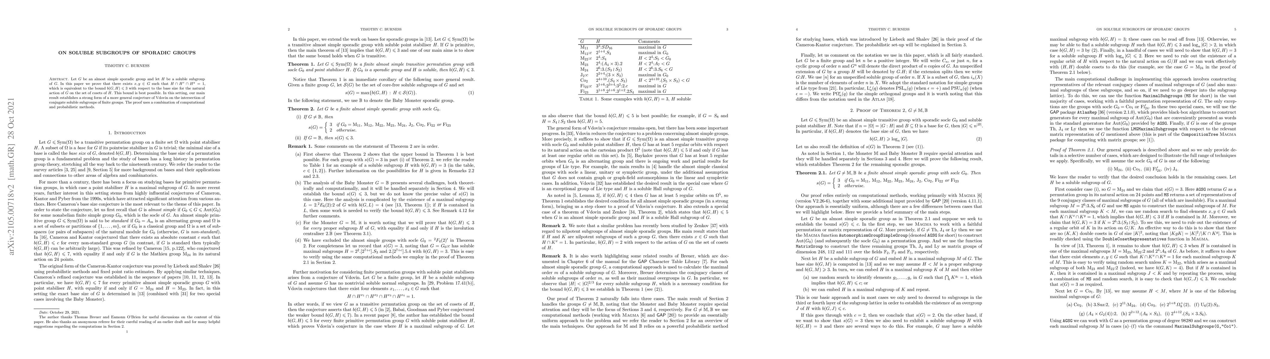 This paper proves that for an almost simple sporadic group $G$ and its soluble subgroup $H$, there exist elements $x,y \in G$ such that $H \cap H^x \cap H^y = 1$, establishing the best possible bound $b(G,H) \leqslant 3$ on the base size of $G$ on cosets of $H$. The proof employs computational and probabilistic techniques to support a conjecture by Vdovin.