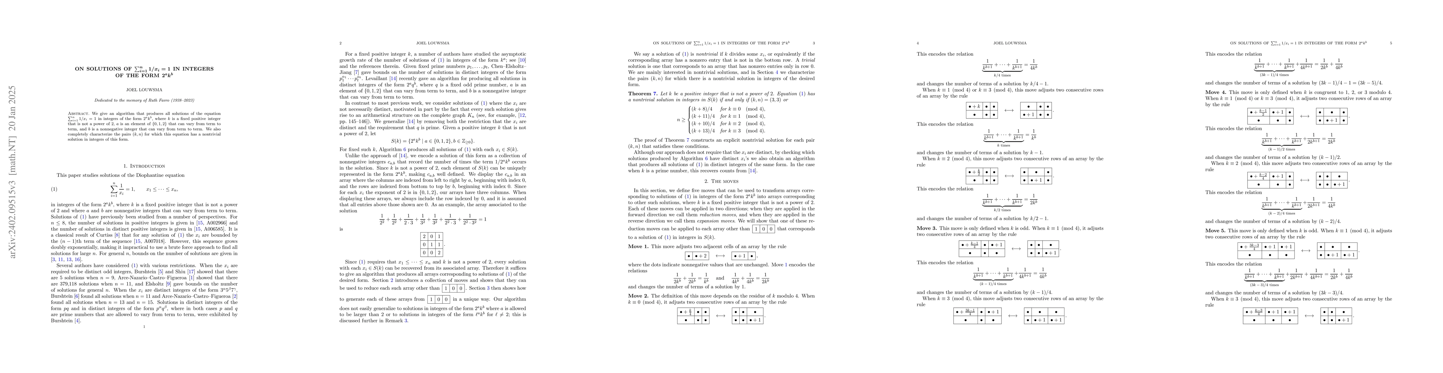 This paper presents an algorithm to find all solutions of the equation $\sum_{i=1}^n 1/x_i = 1$ where $x_i$ are integers of the form $2^a k^b$ with $k$ a fixed odd integer $\geq 3$. It also proves that nontrivial solutions exist if $k \leq 4n-11$ or $(k,n) = (3,3)$.