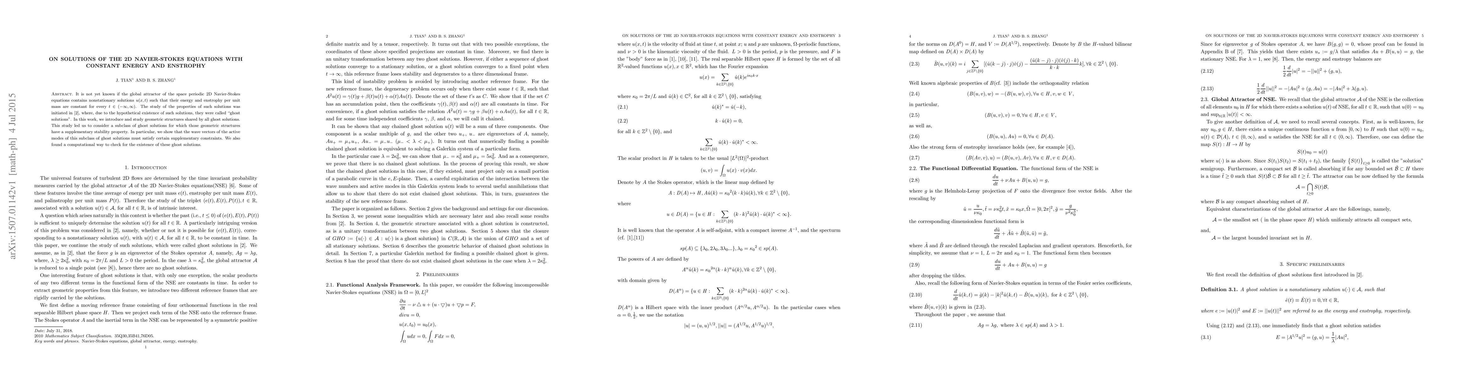 It is not yet known if the global attractor of the space periodic 2D Navier-Stokes equations contains nonstationary solutions $u(x,t)$ such that their energy and enstrophy per unit mass are constant for every $t \in (-\infty, \infty)$. The study of the properties of such solutions was initiated in \cite{CMM13}, where, due to the hypothetical existence of such solutions, they were called "ghost solutions". In this work, we introduce and study geometric structures shared by all ghost solutions. This study led us to consider a subclass of ghost solutions for which those geometric structures have a supplementary stability property. In particular, we show that the wave vectors of the active modes of this subclass of ghost solutions must satisfy certain supplementary constraints. We also found a computational way to check for the existence of these ghost solutions.