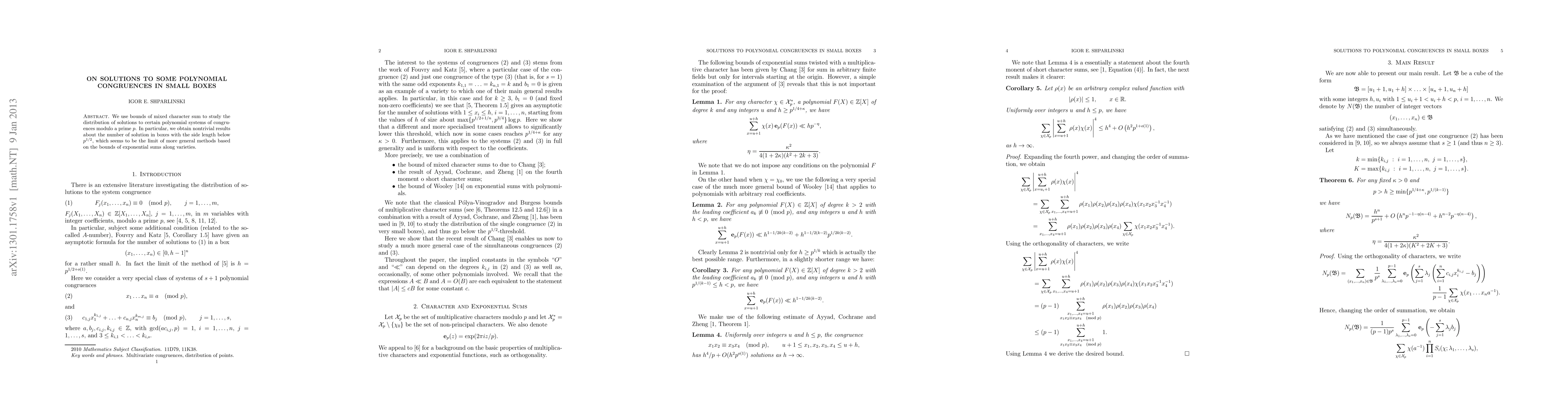 We use bounds of mixed character sum to study the distribution of solutions to certain polynomial systems of congruences modulo a prime $p$. In particular, we obtain nontrivial results about the number of solution in boxes with the side length below $p^{1/2}$, which seems to be the limit of more general methods based on the bounds of exponential sums along varieties.