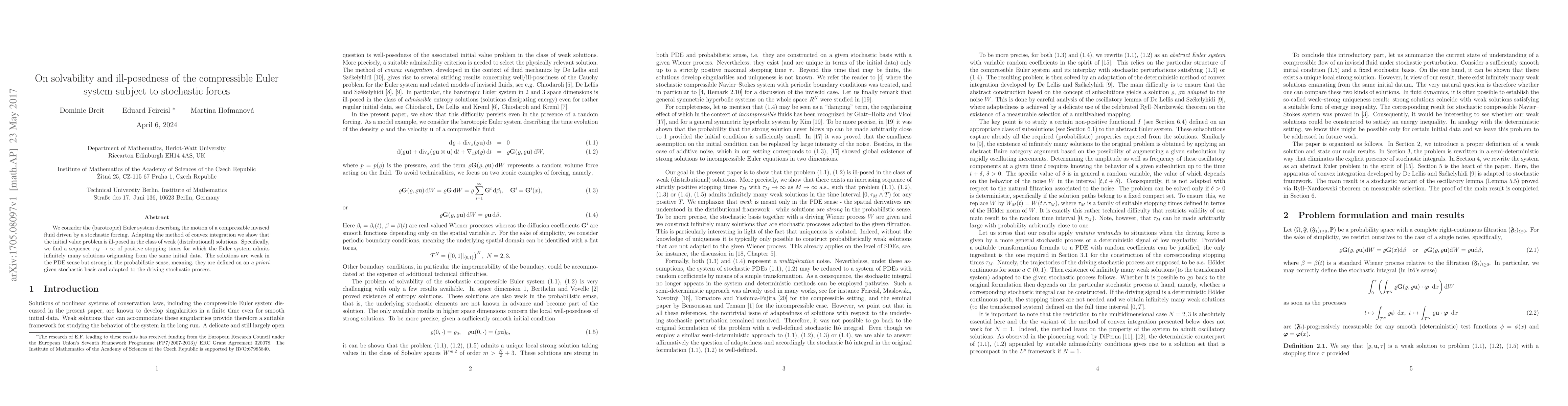 This research demonstrates that the compressible Euler system, modeling inviscid fluid motion under stochastic forces, is ill-posed for weak solutions. Using convex integration, it's shown that identical initial conditions can yield multiple solutions over increasing time intervals, with these solutions being mathematically weak yet robustly defined on a specified stochastic foundation.