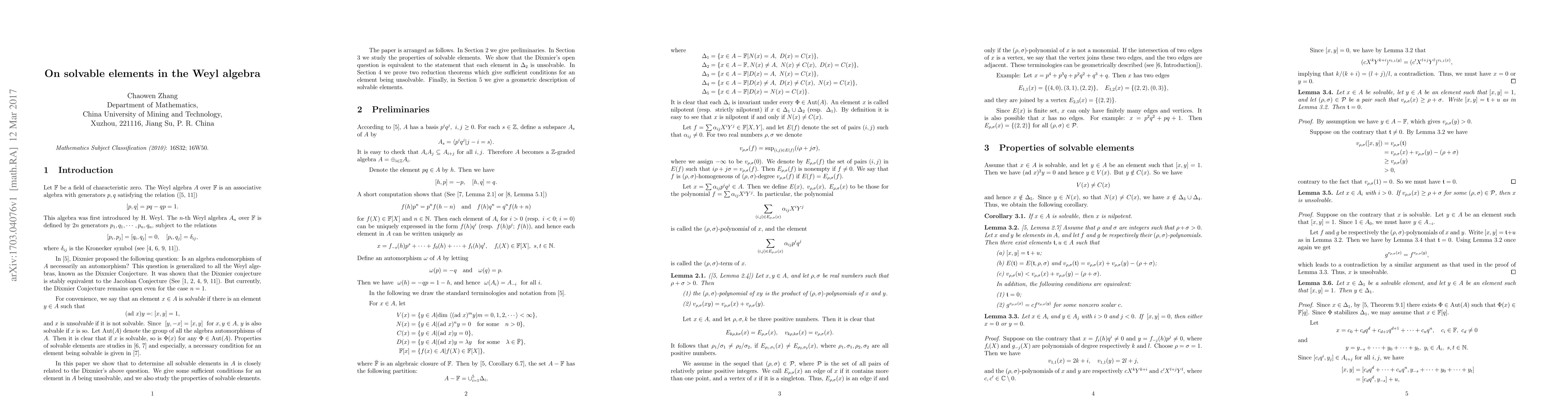 Summary: This paper explores the solvable elements within the Weyl algebra, linking their determination to Dixmier's open question, and provides sufficient conditions for elements to be unsolvable along with properties of solvable elements.