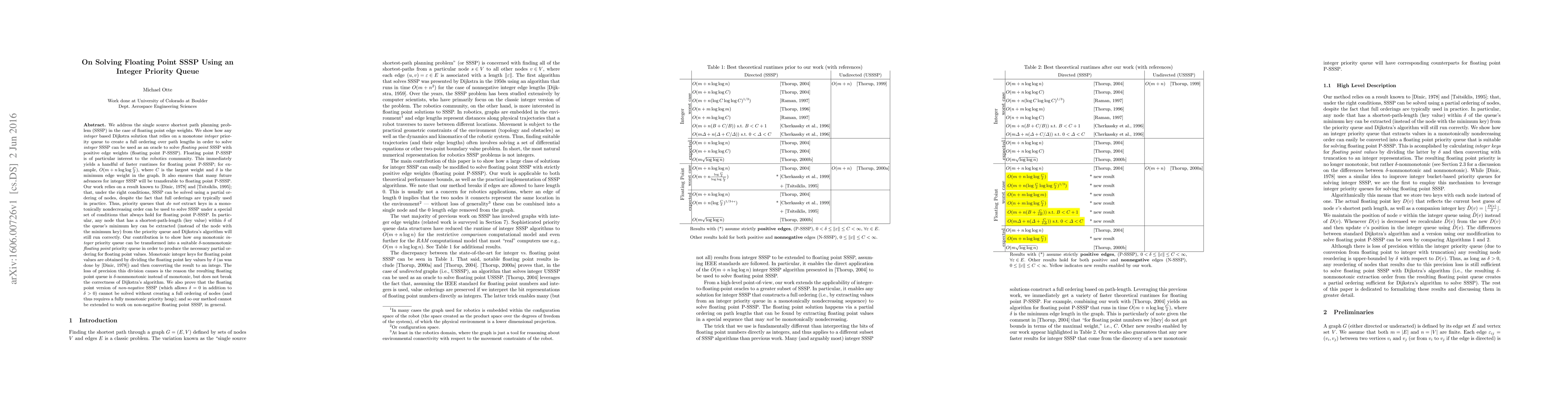 We address the single source shortest path planning problem (SSSP) in the case of floating point edge weights. We show how any integer based Dijkstra solution that relies on a monotone integer priority queue to create a full ordering over path lengths in order to solve integer SSSP can be used as an oracle to solve floating point SSSP with positive edge weights (floating point P-SSSP). Floating point P-SSSP is of particular interest to the robotics community. This immediately yields a handful of faster runtimes for floating point P-SSSP; for example, ${O({m + n\log \log \frac{C}{\delta}})}$, where $C$ is the largest weight and $\delta$ is the minimum edge weight in the graph. It also ensures that many future advances for integer SSSP will be transferable to floating point P-SSSP.