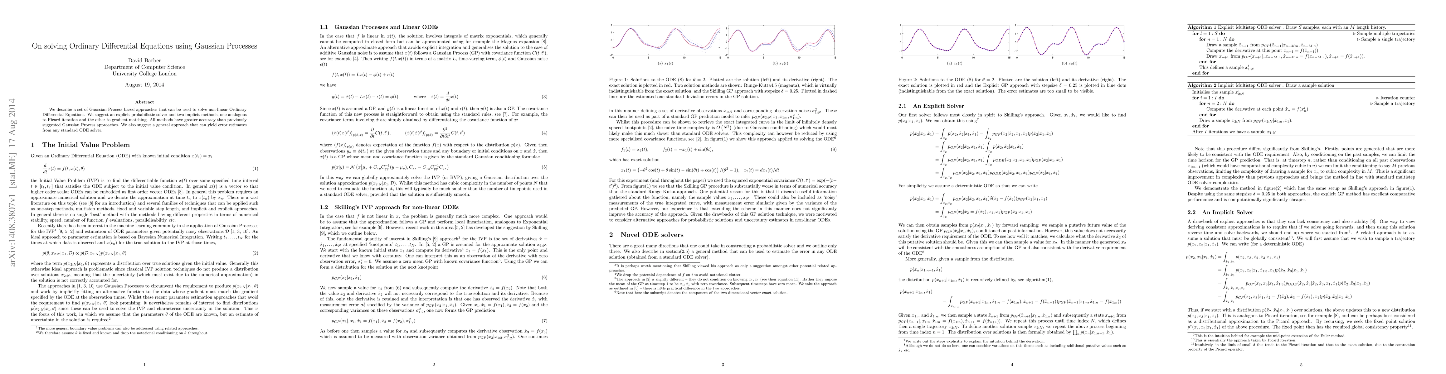 We describe a set of Gaussian Process based approaches that can be used to solve non-linear Ordinary Differential Equations. We suggest an explicit probabilistic solver and two implicit methods, one analogous to Picard iteration and the other to gradient matching. All methods have greater accuracy than previously suggested Gaussian Process approaches. We also suggest a general approach that can yield error estimates from any standard ODE solver.