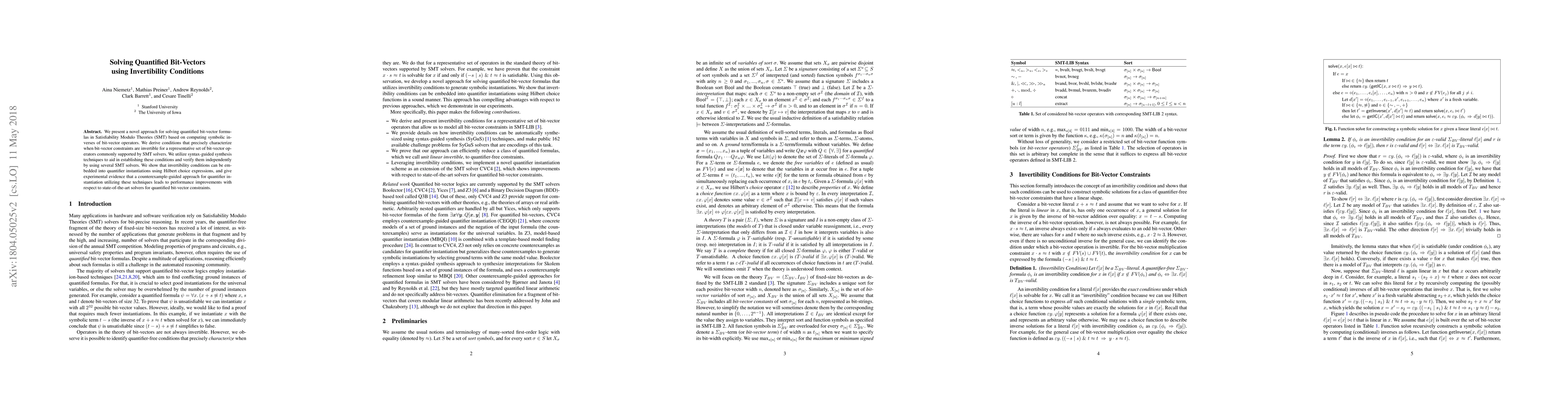 This paper introduces a novel method for solving quantified bit-vector formulas in SMT by computing symbolic inverses of bit-vector operators, deriving invertibility conditions, and embedding these into quantifier instantiations. Experimental results show performance improvements over state-of-the-art solvers.