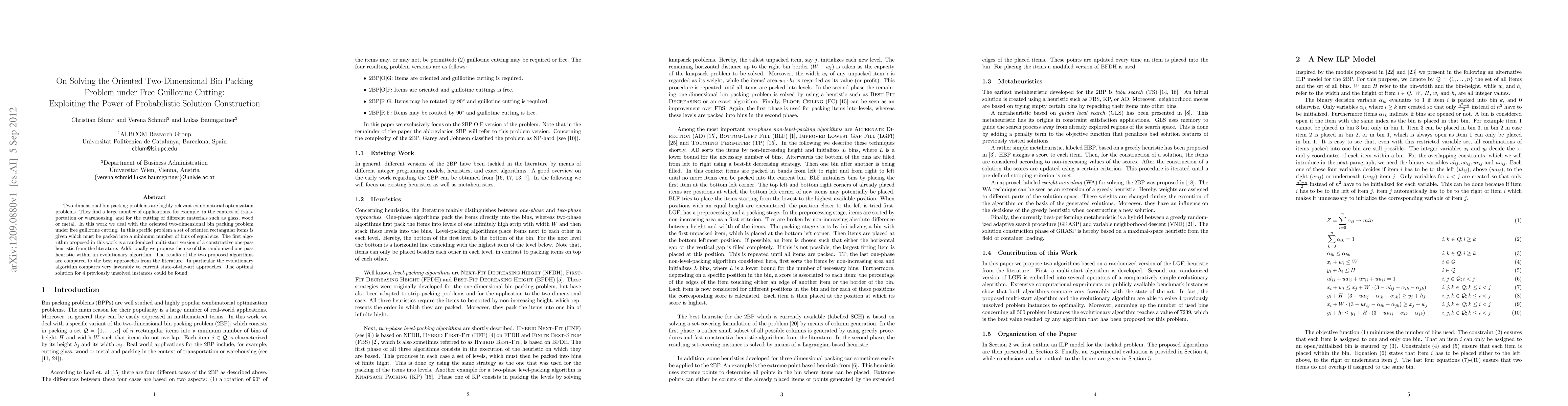 This paper proposes randomized algorithms for solving the oriented two-dimensional bin packing problem under free guillotine cutting, comparing a multi-start heuristic and an evolutionary algorithm to existing methods. The evolutionary algorithm notably outperforms current state-of-the-art approaches and found optimal solutions for four previously unsolved instances.