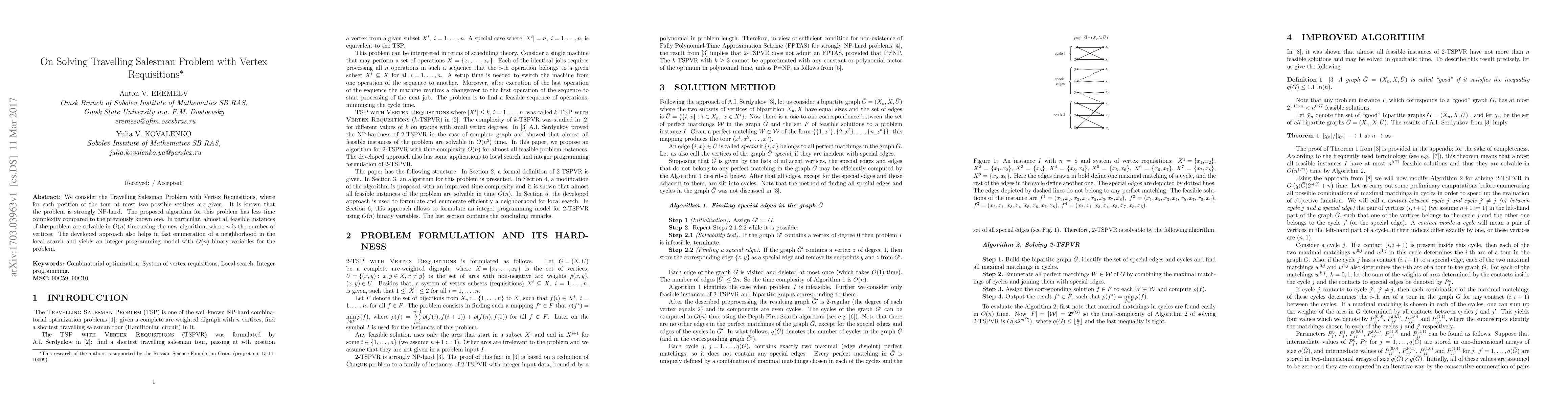 Researchers have developed a new algorithm to solve the Travelling Salesman Problem with Vertex Requisitions, achieving faster time complexity of O(n) for nearly all feasible instances.