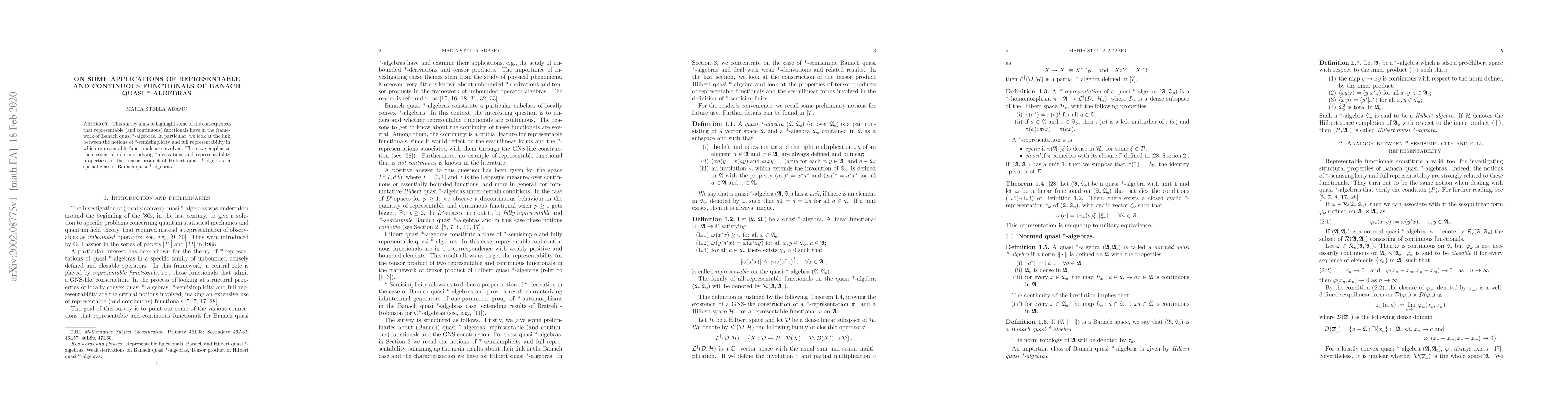 This paper surveys the impact of representable and continuous functionals within Banach quasi *-algebras, emphasizing their role in *-semisimplicity and full representability, and their importance in studying *-derivations and tensor products of Hilbert quasi *-algebras.