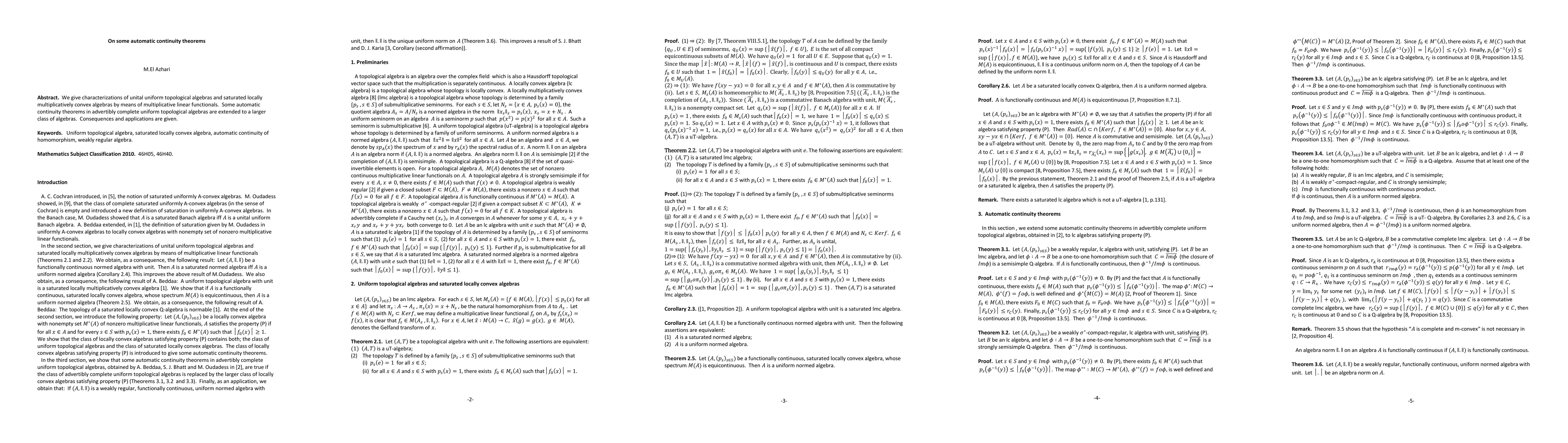 The paper presents novel characterizations of unital uniform topological algebras and saturated locally multiplicatively convex algebras, along with extensions of automatic continuity theorems to a broader class of algebras.