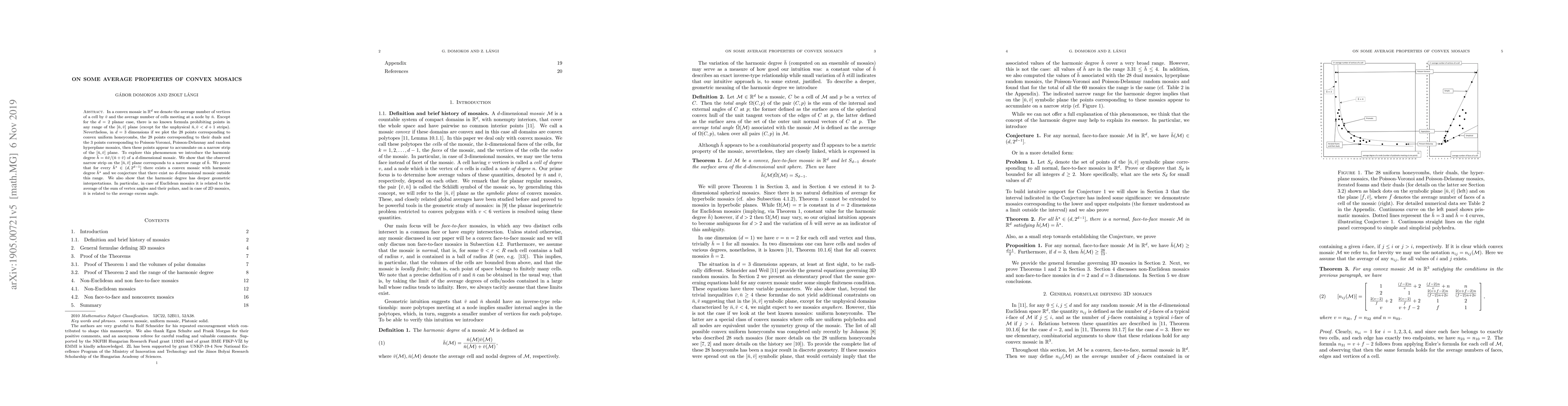 Researchers investigate convex mosaics in d-dimensional space, discovering a narrow strip on the average number of cells meeting at a node and vertices plane where harmonic degree is concentrated, with implications for geometric interpretations and possible range limits.