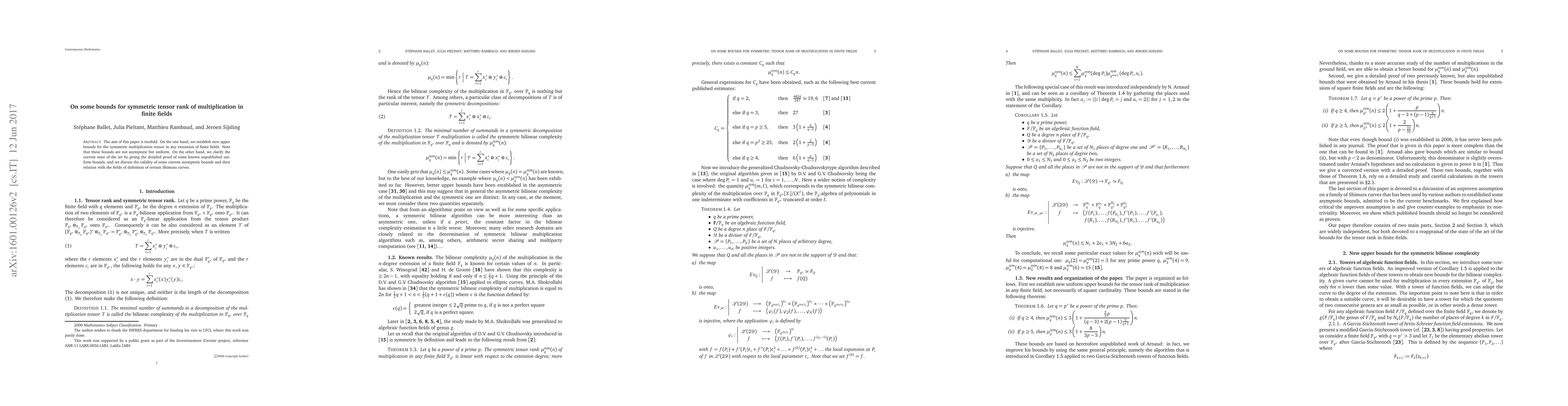 Summary: This paper establishes new uniform upper bounds for the symmetric tensor rank of multiplication in finite field extensions. It also provides examples of Shimura curves that challenge the validity of previously published bounds.