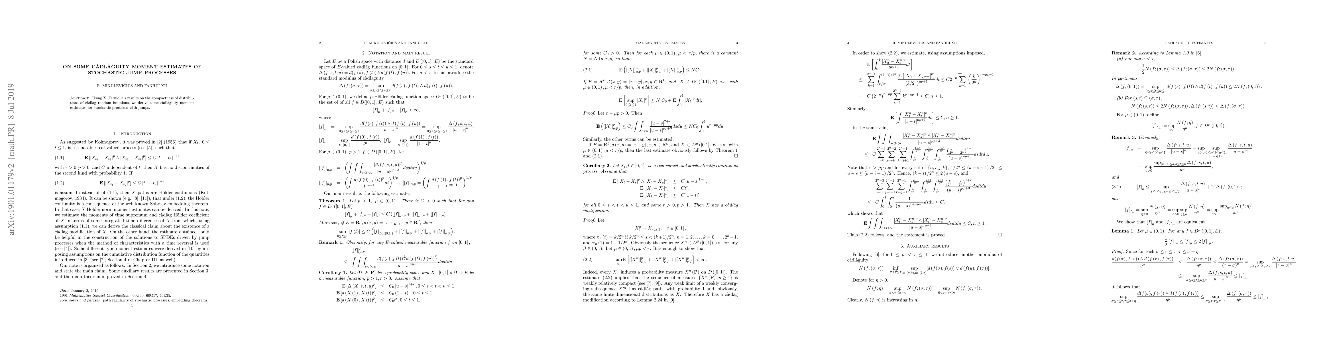 Using the results of X. Fernique on the compactness of distributions of cadlag random functions, we derive some cadlaguity moment estimates for stochastic processes with jumps.