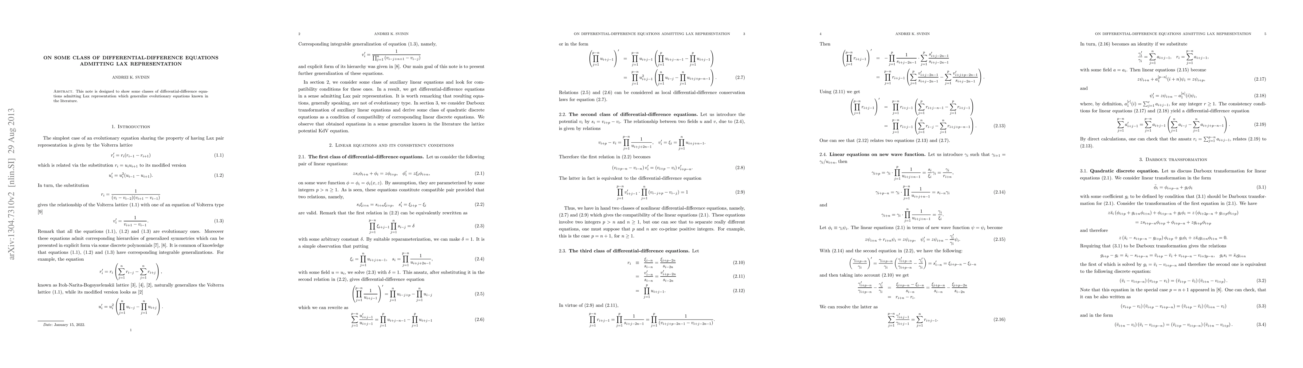 Summary: This paper explores classes of differential-difference equations that can be represented using Lax pairs, extending beyond traditional evolutionary equations and presenting a generalized framework for such equations.