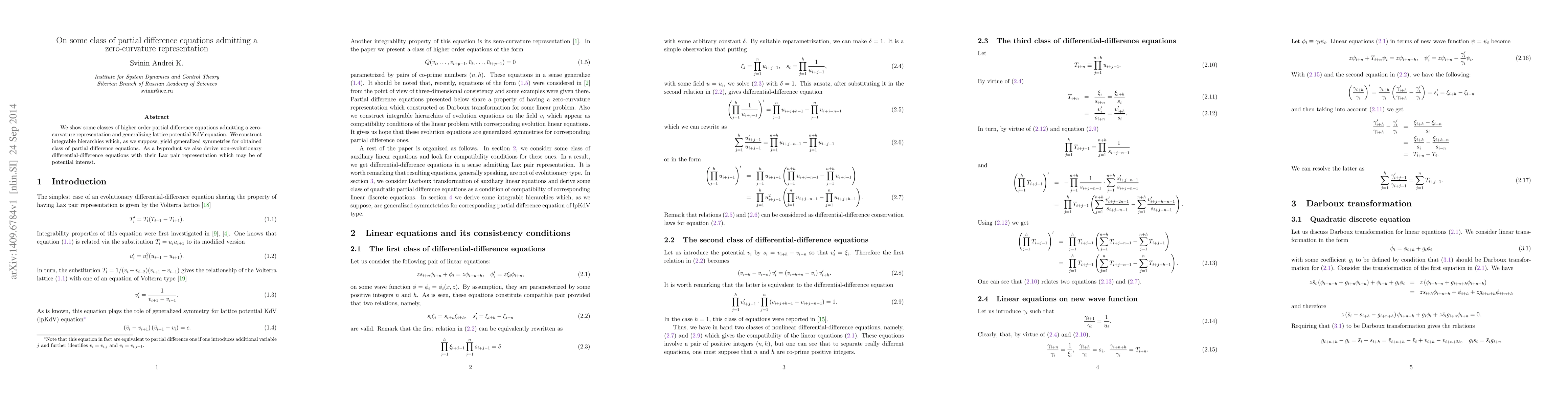This paper explores higher-order partial difference equations that can be represented in a zero-curvature form, generalizing the lattice potential KdV equation. It constructs integrable hierarchies that likely provide generalized symmetries for these equations and also derives non-evolutionary differential-difference equations with Lax pair representation.