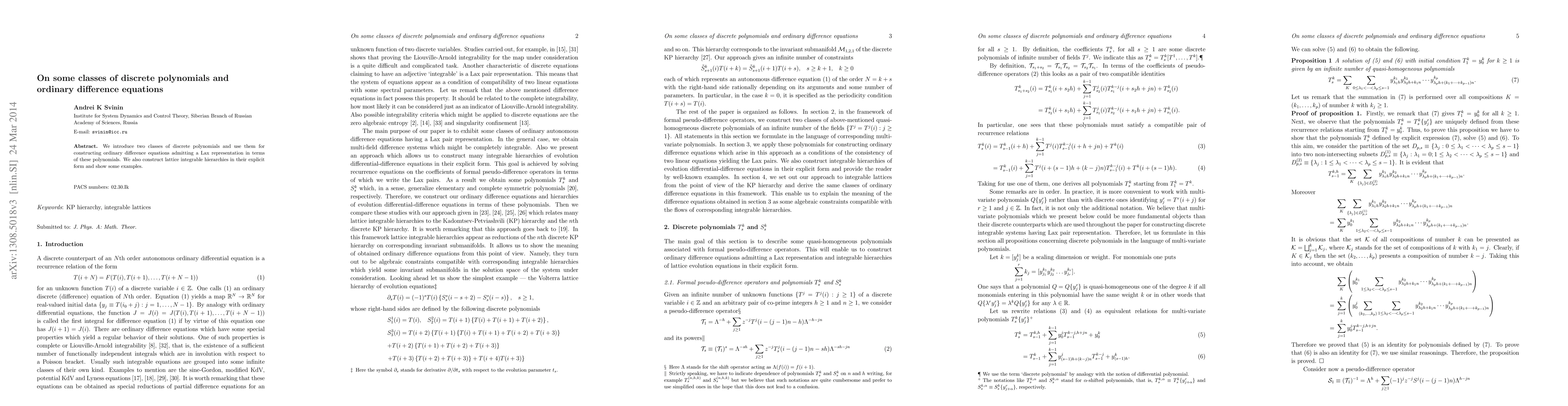 Summary: This paper introduces two classes of discrete polynomials and constructs associated discrete equations with a Lax representation. It also presents a method for constructing lattice integrable hierarchies explicitly, providing illustrative examples.