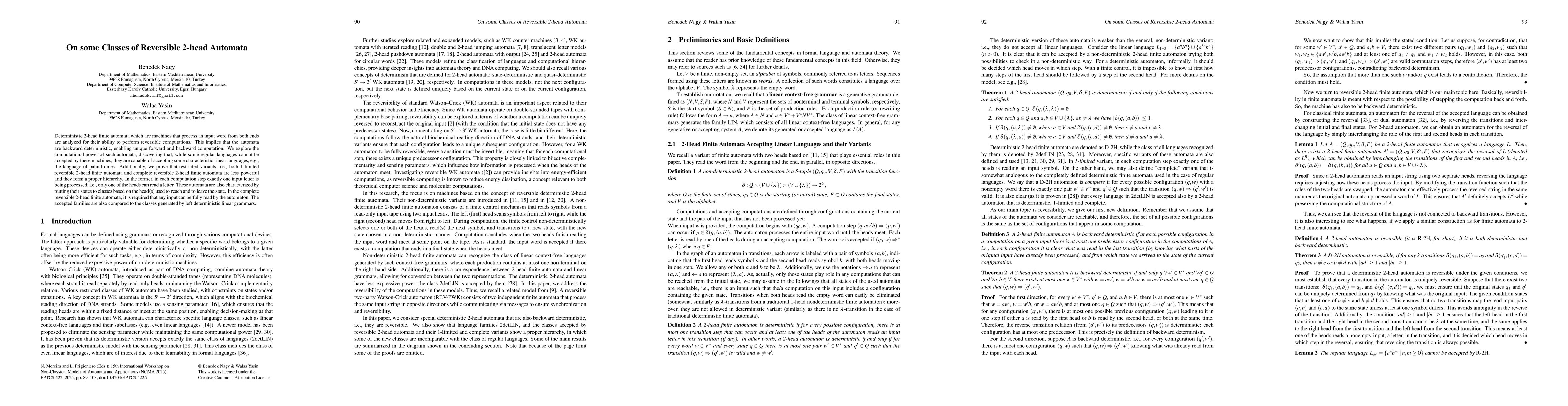 Deterministic 2-head finite automata which are machines that process an input word from both ends are analyzed for their ability to perform reversible computations. This implies that the automata are backward deterministic, enabling unique forward and backward computation. We explore the computational power of such automata, discovering that, while some regular languages cannot be accepted by these machines, they are capable of accepting some characteristic linear languages, e.g., the language of palindromes. Additionally, we prove that restricted variants, i.e., both 1-limited reversible 2-head finite automata and complete reversible 2-head finite automata are less powerful and they form a proper hierarchy. In the former, in each computation step exactly one input letter is being processed, i.e., only one of the heads can read a letter. These automata are also characterized by putting their states to classes based on the head(s) used to reach and to leave the state. In the complete reversible 2-head finite automata, it is required that any input can be fully read by the automaton. The accepted families are also compared to the classes generated by left deterministic linear grammars.