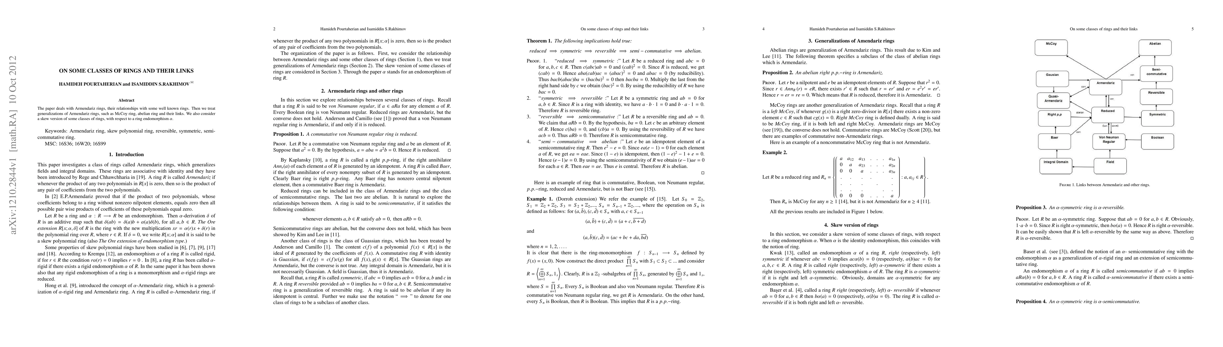 Summary: The paper explores Armendariz rings, their connections to McCoy, abelian rings, and skew variants under a ring endomorphism, examining their generalized properties and relationships.
