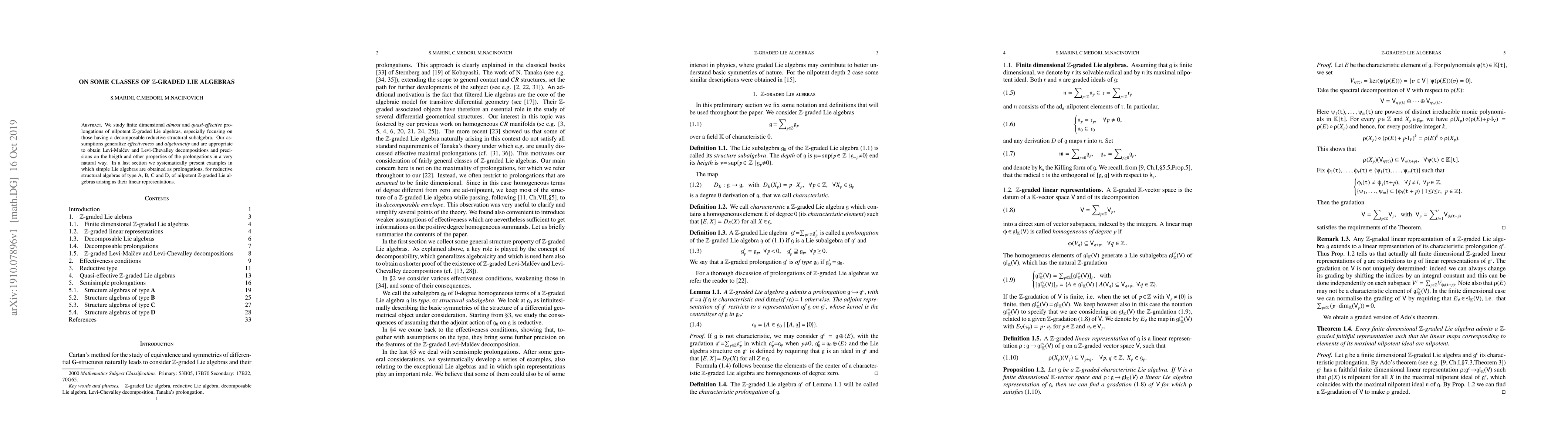 This paper investigates finite-dimensional nilpotent Z-graded Lie algebras, focusing on their almost and quasi-effective prolongations, especially when they possess a decomposable reductive structural subalgebra. The study generalizes effectiveness and algebraicity to naturally obtain Levi-Malcev and Levi-Chevalley decompositions and analyze the properties of these prolongations. Examples are provided where simple Lie algebras emerge as prolongations of reductive structural algebras of classical types.