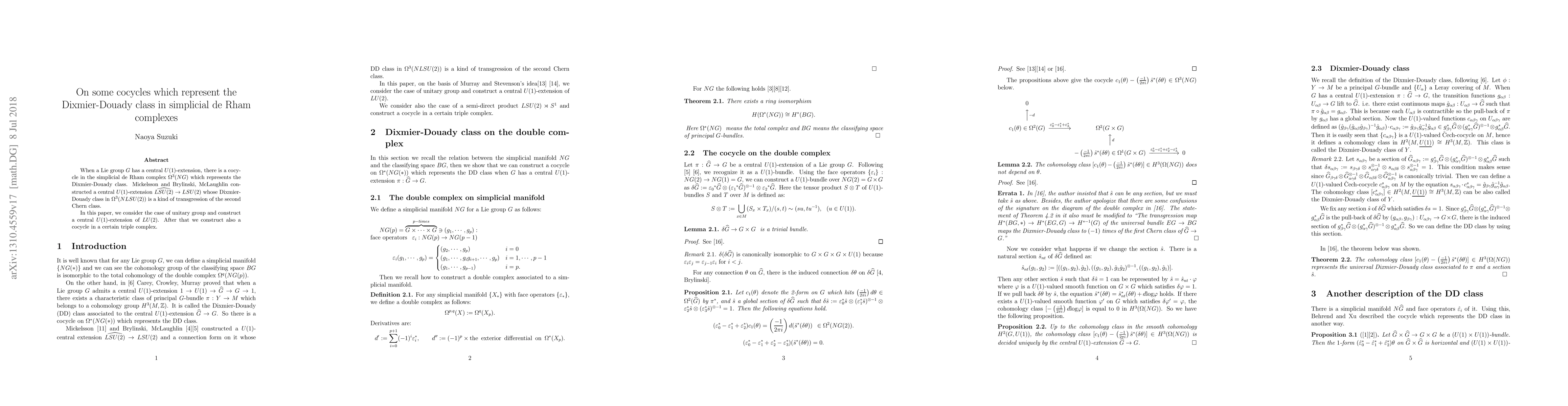 The paper presents a detailed construction of a central U(1)-extension of LU(2) and a corresponding cocycle in a triple complex, linking it to the Dixmier-Douady class.