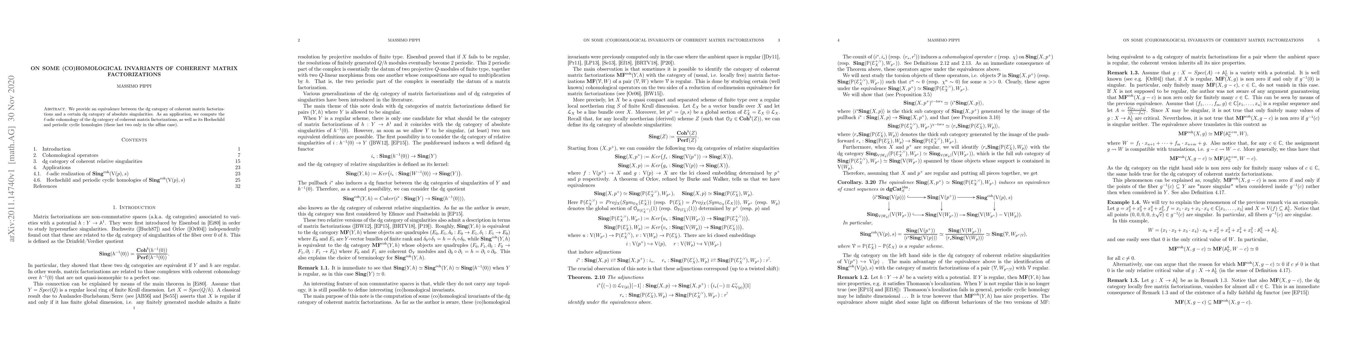 We provide an equivalence between the dg category of coherent matrix factorizations and a certain dg category of absolute singularities. As an application, we compute the l-adic cohomology of the dg category of coherent matrix factorizations, as well as its Hochschild and periodic cyclic homologies (these last two only in the affine case).