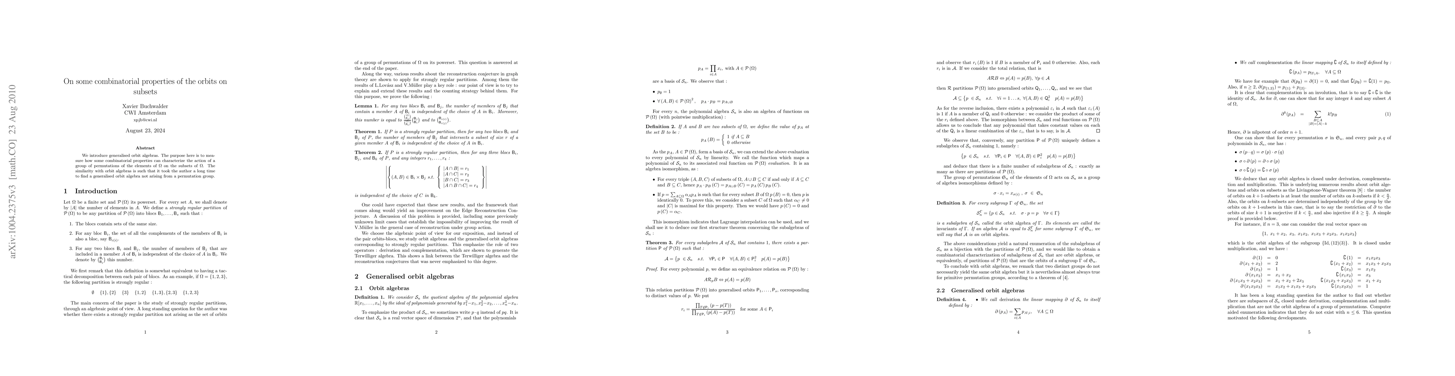 The paper presents a novel approach by generalising orbit algebras to measure more intricate combinatorial properties of group actions on subsets, offering a new perspective on reconstruction problems in graph theory.