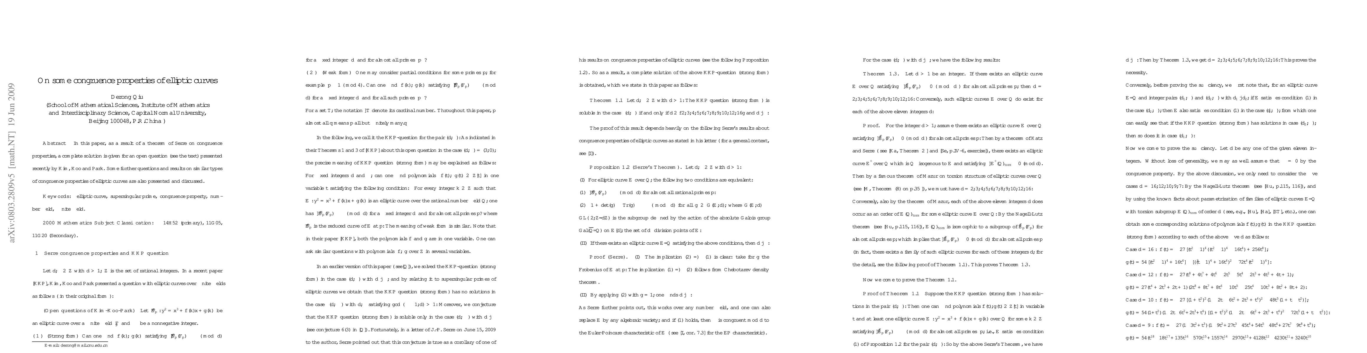 This paper resolves an open question regarding congruence properties of elliptic curves using Serre's theorem, and presents additional findings and discussions on related congruence properties. Further questions are also introduced for future research.