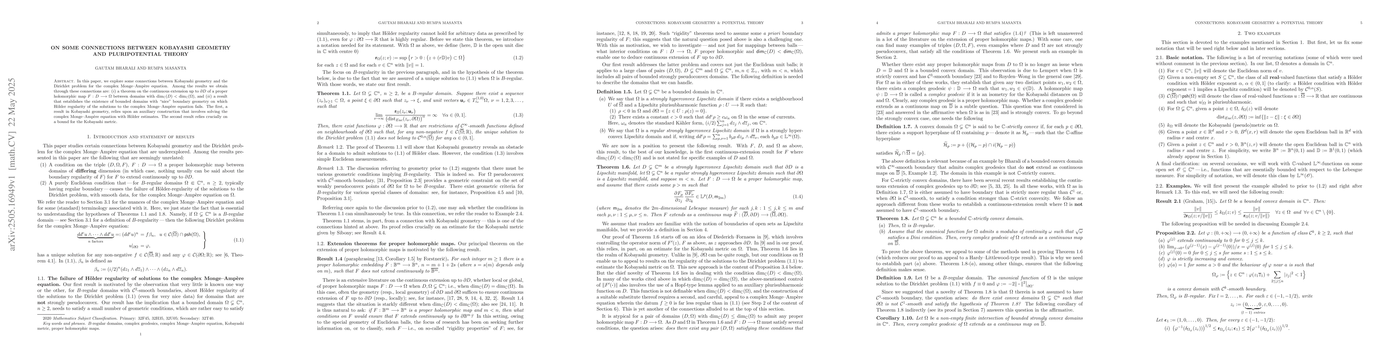 The paper presents novel theorems and results linking Kobayashi geometry with pluripotential theory, specifically addressing the Dirichlet problem for the complex Monge--Ampère equation.