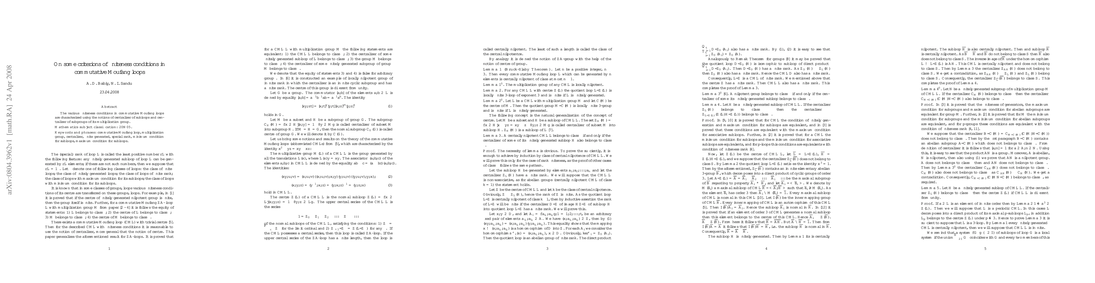 The various finiteness conditions in commutative Moufang loops are characterized using the notions of centralizer of subloops and centralizer of subgroups of its multiplication group.