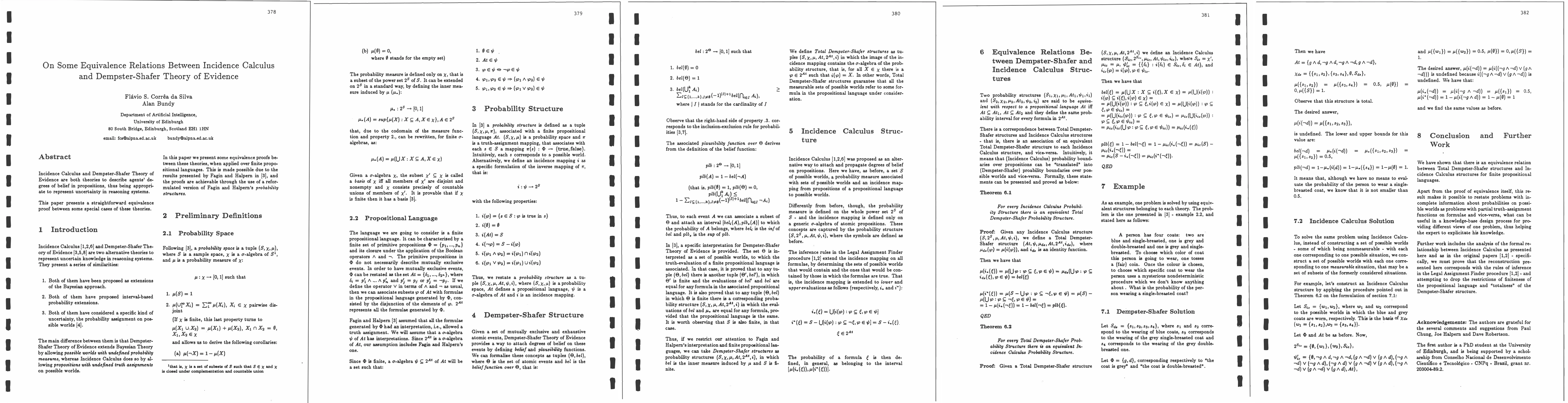 Incidence Calculus and Dempster-Shafer Theory of Evidence are both theories to describe agents' degrees of belief in propositions, thus being appropriate to represent uncertainty in reasoning systems. This paper presents a straightforward equivalence proof between some special cases of these theories.