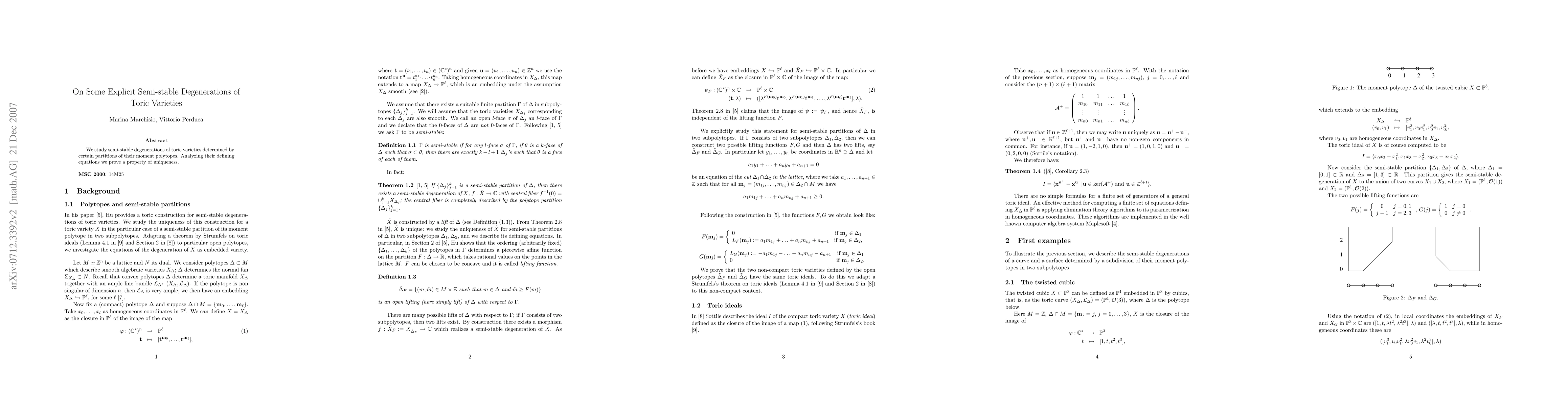 Summary: This paper investigates semi-stable degenerations of toric varieties based on specific partition structures of their moment polytopes, and establishes a uniqueness property for these degenerations through an analysis of their defining equations.