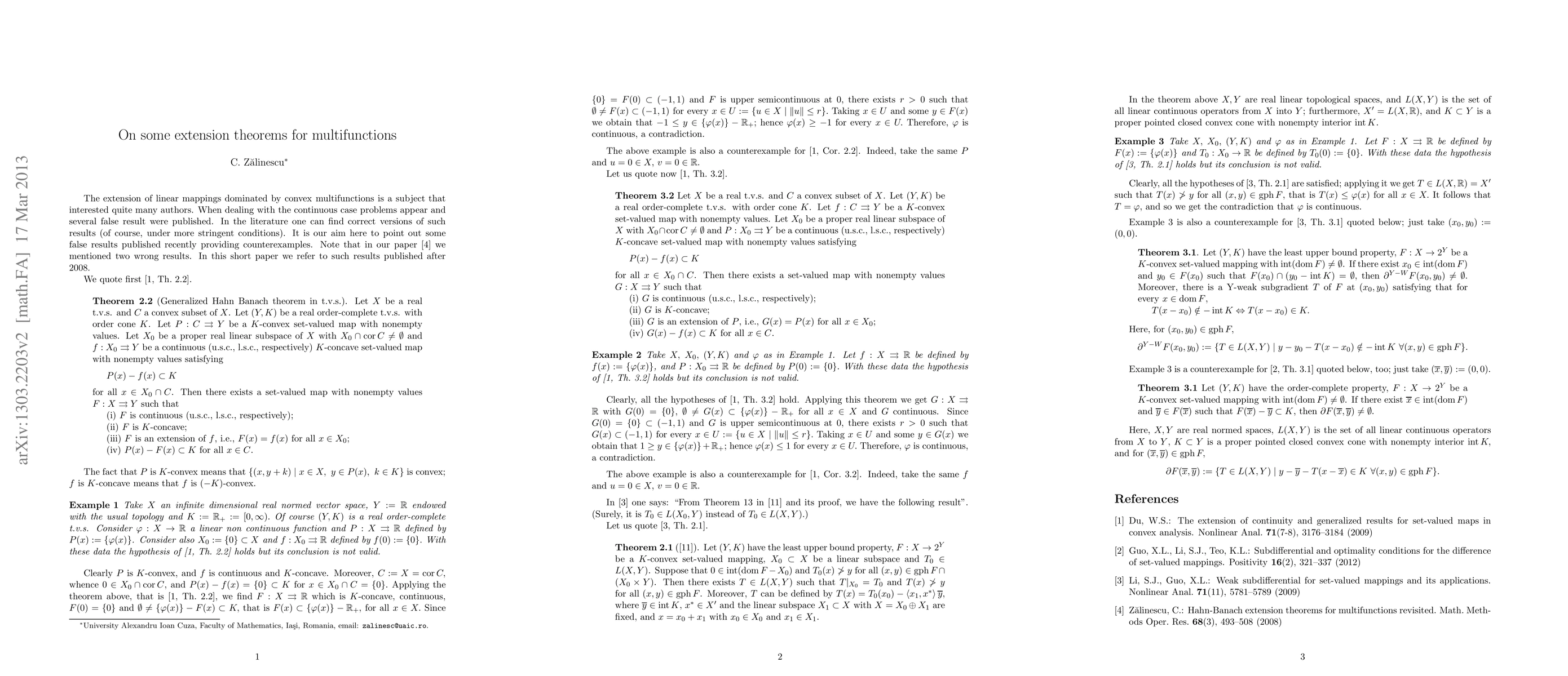 In this short note we give counterexamples to several results related to extension theorems published recently.