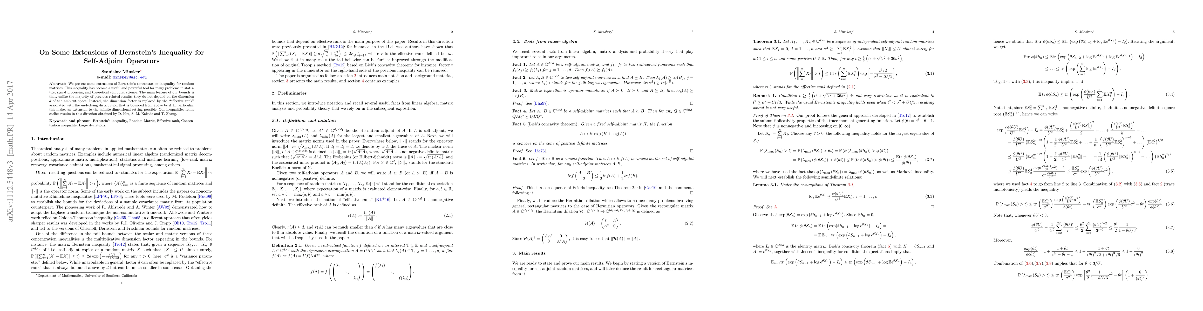 This paper extends Bernstein's concentration inequality for random matrices, removing the dependence on the ambient space dimension and instead relying on the effective rank of the underlying distribution. This allows for extensions to infinite-dimensional settings, refining previous results by Hsu, Kakade, and Zhang.
