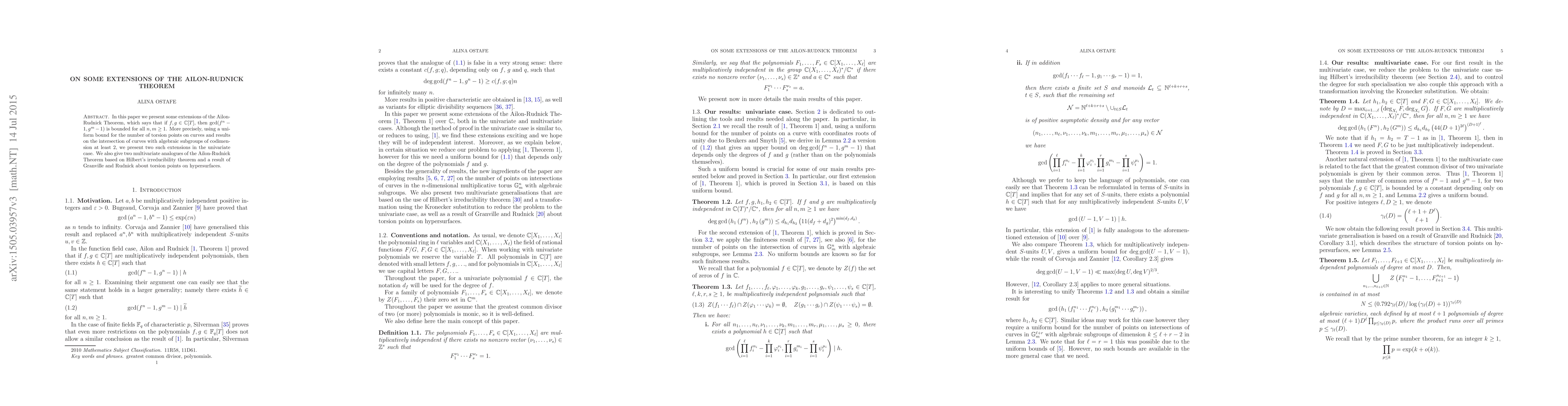 In this paper we present some extensions of the Ailon-Rudnick Theorem, which says that if $f,g\in{\mathbb C}[T]$, then $\gcd(f^n-1,g^m-1)$ is bounded for all $n,m\ge 1$. More precisely, using a uniform bound for the number of torsion points on curves and results on the intersection of curves with algebraic subgroups of codimension at least $2$, we present two such extensions in the univariate case. We also give two multivariate analogues of the Ailon-Rudnick Theorem based on Hilbert's irreducibility theorem and a result of Granville and Rudnick about torsion points on hypersurfaces.