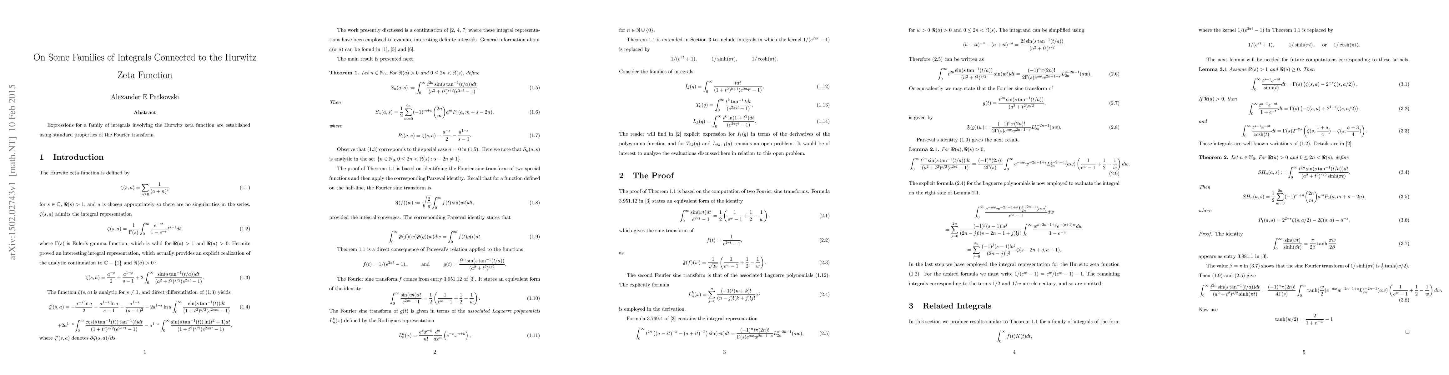Summary: This paper establishes expressions for integrals related to the Hurwitz zeta function by leveraging the Fourier transform's standard properties. The results provide new insights into the analytical behavior of these integrals.