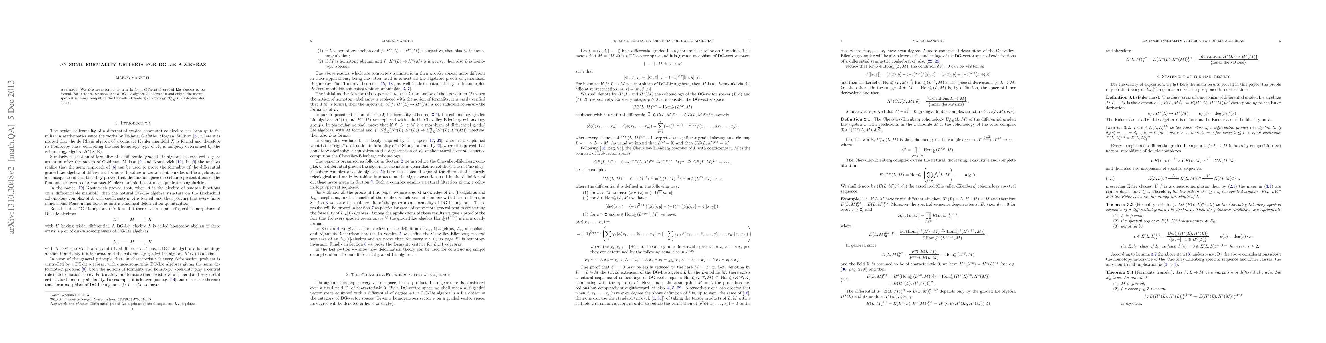 Summary: This paper establishes criteria for determining when a differential graded Lie algebra (DG-Lie algebra) is formal, specifically showing that L is formal if the spectral sequence computing its Chevalley-Eilenberg cohomology degenerates at the second page.